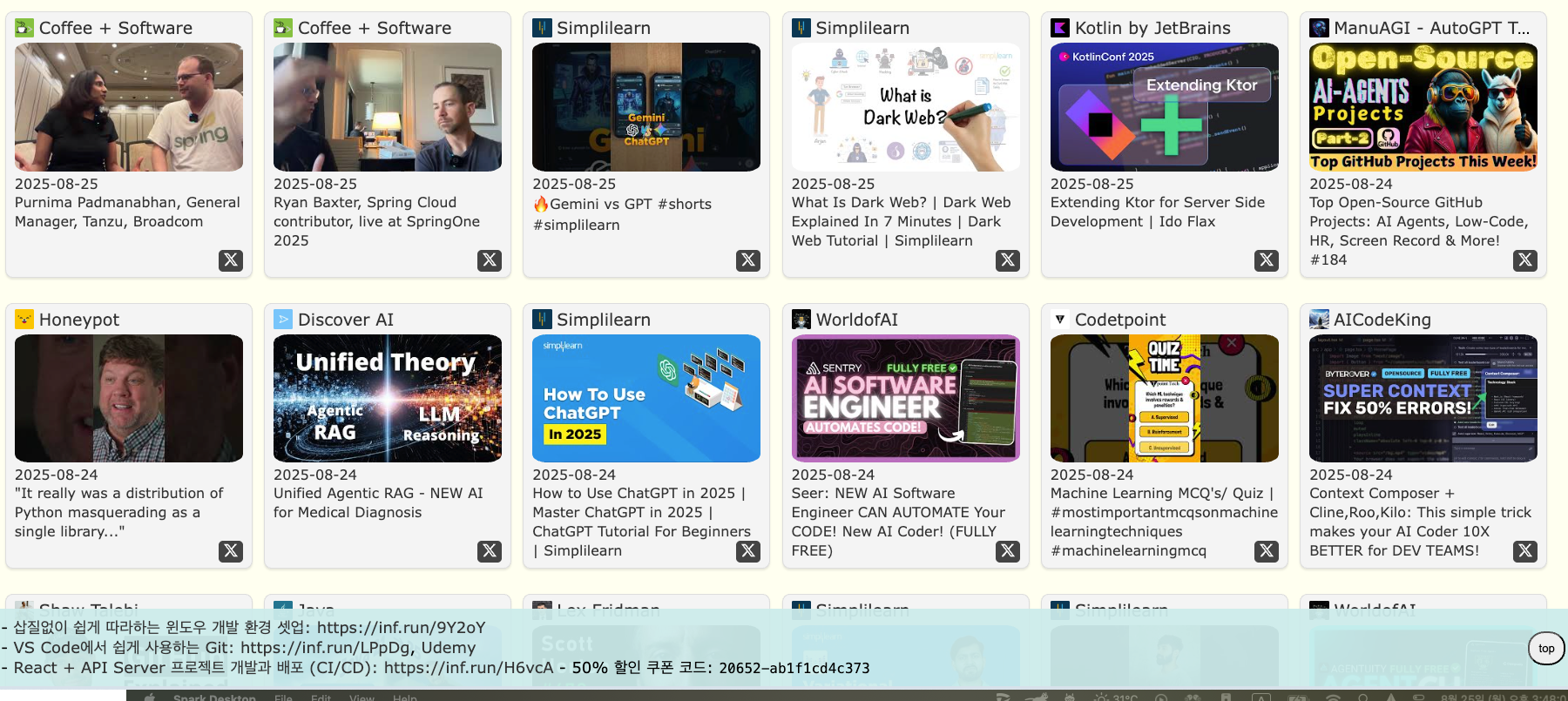 개발관련 유튜브 최근 영상이 도움이 되면 좋겠습니다. https://mp4.okdevtv.com/en