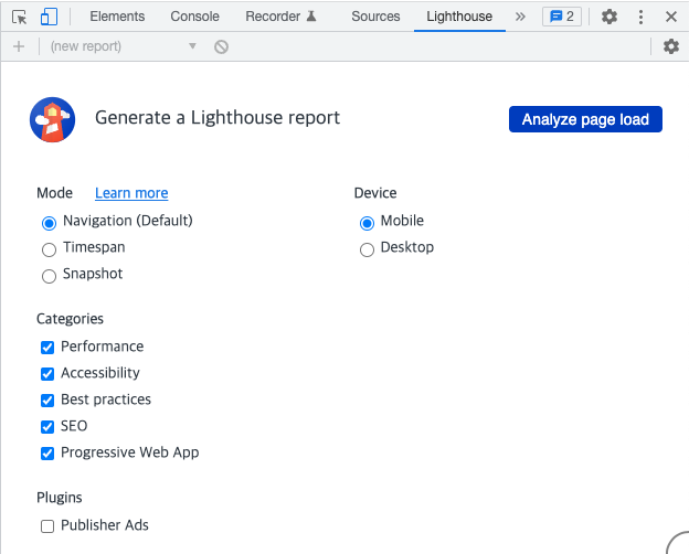 Lighthouse는 웹페이지 진단도구이고, 개발자도구 탭에 기본으로 보입니다.